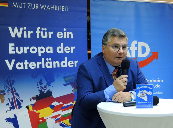 Sehr gut besucht war unser Stammtisch mit dem erfahrenen Polizeihauptkommissar a.D. und Bundestagsabgeordneten Martin Hess als beindruckender Gastredner. In einem spannenden und impulsiven Vortrag zeigte MdB Martin Hess die desaströse und Besorgnis erregende Situation in unserem Land auf. Aber auch in der Wirtschaftspolitik, in der Bildungspolitik, in der Familienpolitik und Rentenpolitik etc. - in fast allen Bereichen stelle sich ein Desaster dar. Insbesondere auch die innere Sicherheit unseres Landes stark betreffend. Deutschland sei derzeit so unsicher, wie seit dem 2. Weltkrieg nicht mehr. Alle 2 Minuten würde ein Gewaltdelikt verübt, alle 18 Minuten passiere ein Messerdelikt in Deutschland. Wir erleben eine exorbitante Messerkriminalität, die es vor 2015 nicht in einem solch großem Außmaße gab. Seit 2015 wurden rund 7.000 (Sieben Tausend!) Frauen Opfer eines Sexualdelikts von Zuwanderern. Wir verzeichnen auch in der Kinder- und Jugendkriminalität einen Anstieg von +11 %. Kurzum, die Sicherheitslage sei desaströs! Vor allem müsse der illegalen Migration ein Riegel vorgeschoben, die Grenzen geschützt werden. Es müsse eine konsequente Abschiebung vom illegalen und straffälligen Migranten erfolgen. Martin Hess betonte ausdrücklich, dass all jene Menschen herzlich willkommen sind, welche legal in unser Land kommen, welche die Chance nutzen, hier zu arbeiten, sich in unserem Land eine Existenz aufzubauen, unsere Werte und Grundordnung achten, unser Land lieben und ein Gewínn für unser Land sind. Martin Hess verwies zudem auf all die gebrochen Wahlversprechen eines Friedrich Merz. Eine Rettung für unser Land, so Hess sinngemäß, sei nur noch mit einer AfD in Regierungsverantwortung möglich.